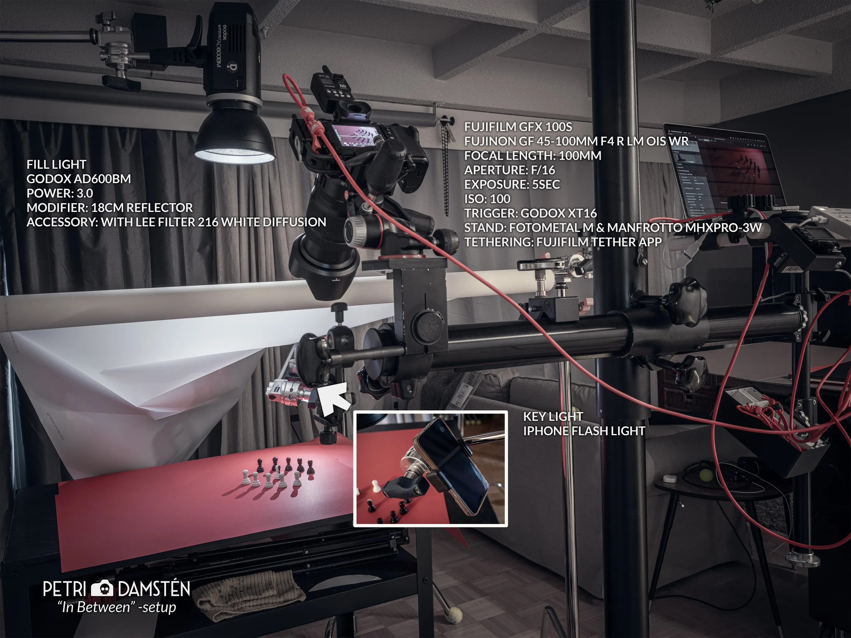 I wondered what to use as a point light to get sharp shadows and ended up using the iPhone flashlight as the key light, with a flash for fill.